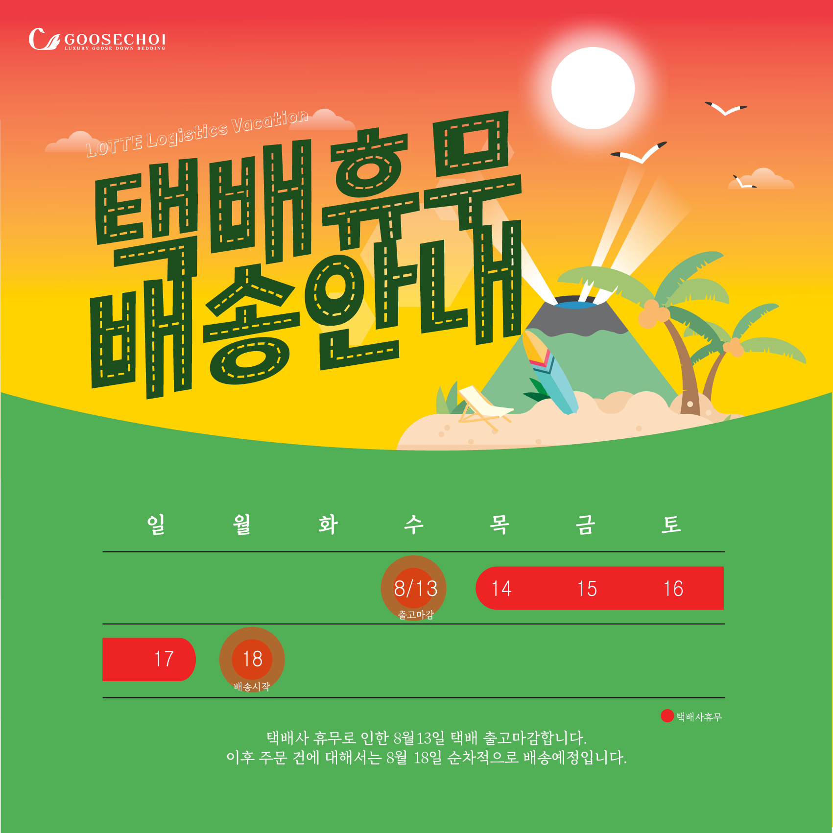 롯데택배 여름휴가 택배 휴무 배송안내 (8월 13일 출고마감-8월 18일 배송시작)